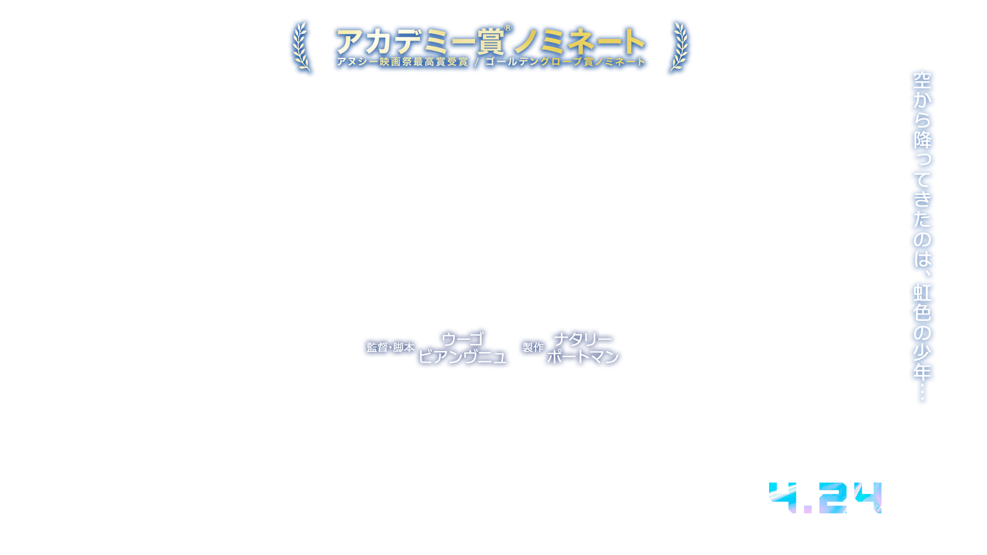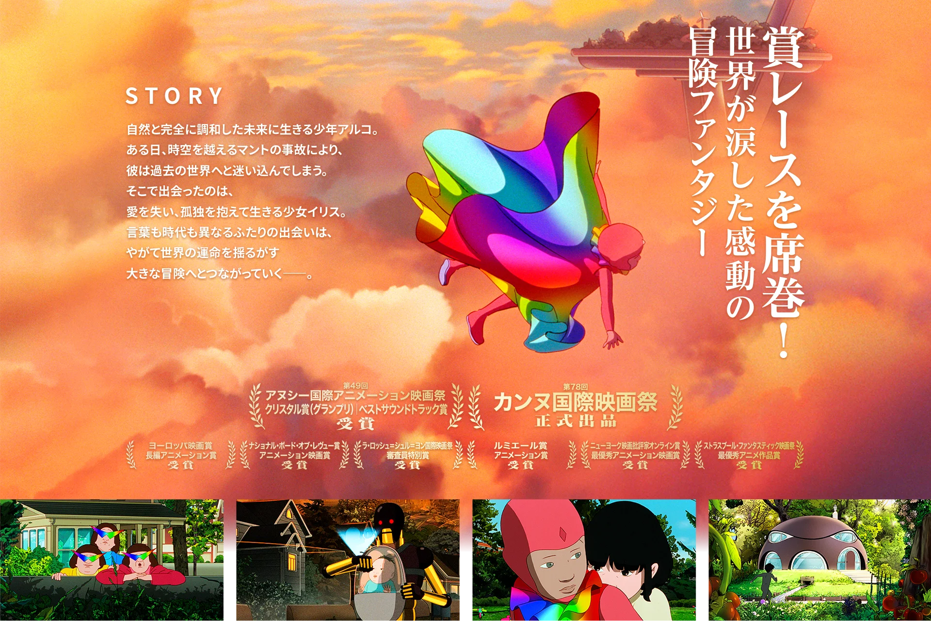 本年度アカデミー賞長編アニメーション映画賞にノミネートを果たし、アニー賞、ヨーロッパ映画賞、アヌシークリスタル賞ほか名だたる映画賞を席巻。孤独な少女イリスと、“空から落ちてきた”虹色の少年アルコの冒険を描き、世界中の批評家と観客から愛された、感動の冒険ファンタジー。